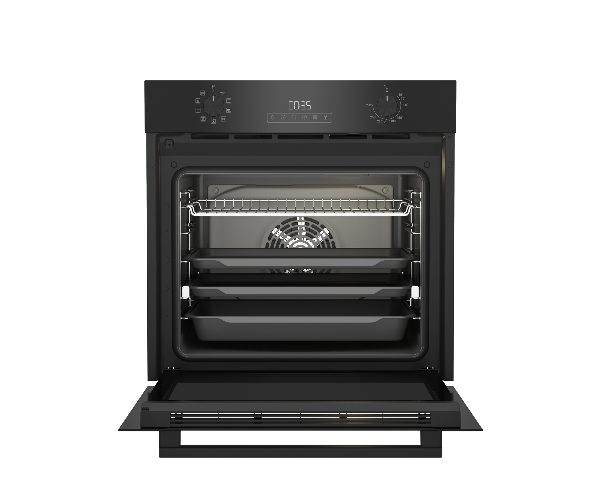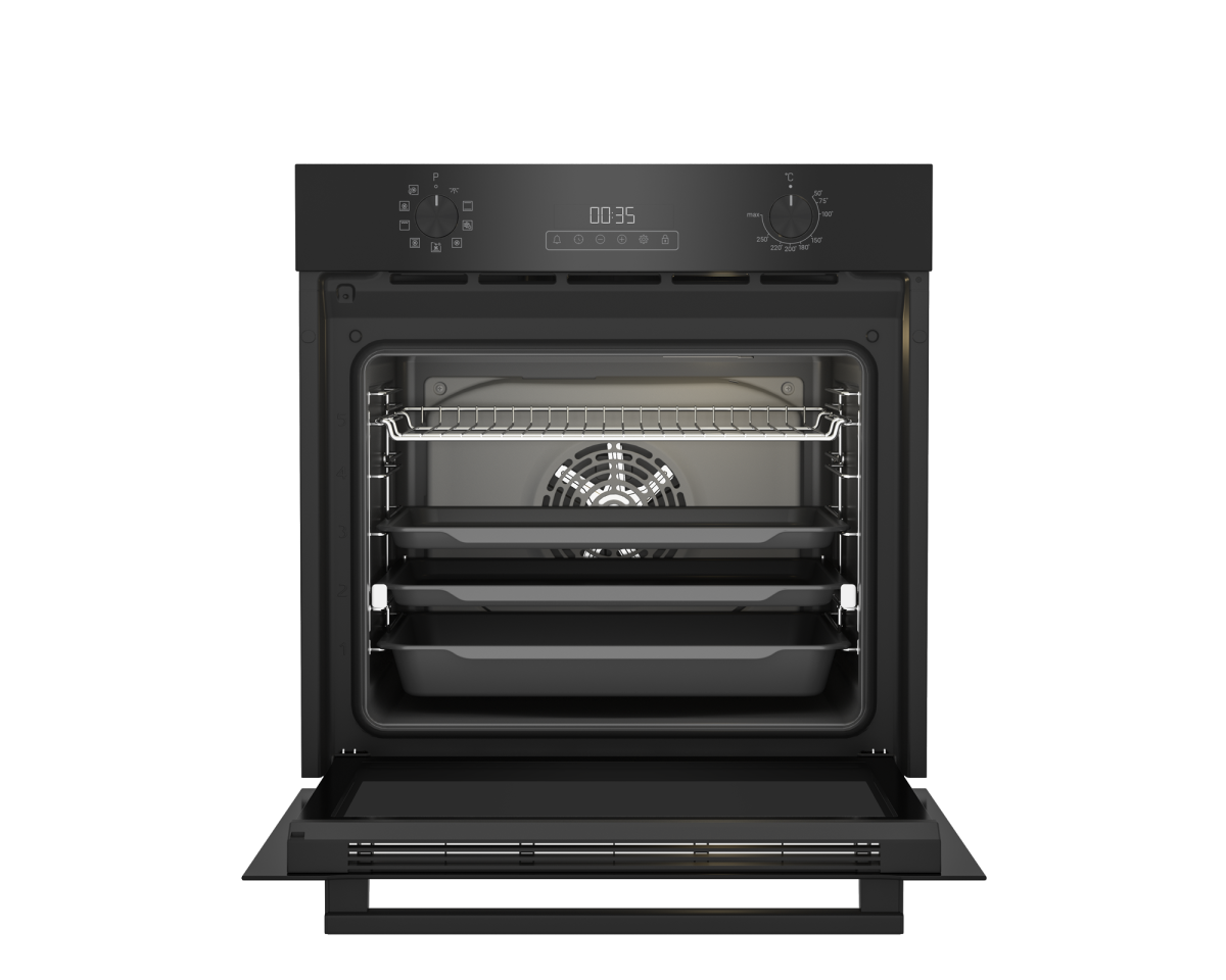 הגדלנו את חללי התנורים שלנו עד 20% יותר, להנאה מרבית מהבישול והאכילה. התנורים של בלומברג מציעים את אחד החללים הגדולים ביותר בשוק כיום בתנורים רגילים ומשולבים – 65 ליטר ועד 75 ליטר, והם מגיעים עם תבניות גדולות יותר בעלות עומק של 5 ס״מ. אפשר בקלות להכניס כמה עופות יחד לתבנית, או לבשל ארוחה שלמה בת שלוש מנות בו זמנית על 3 מתוך 5 המדפים.